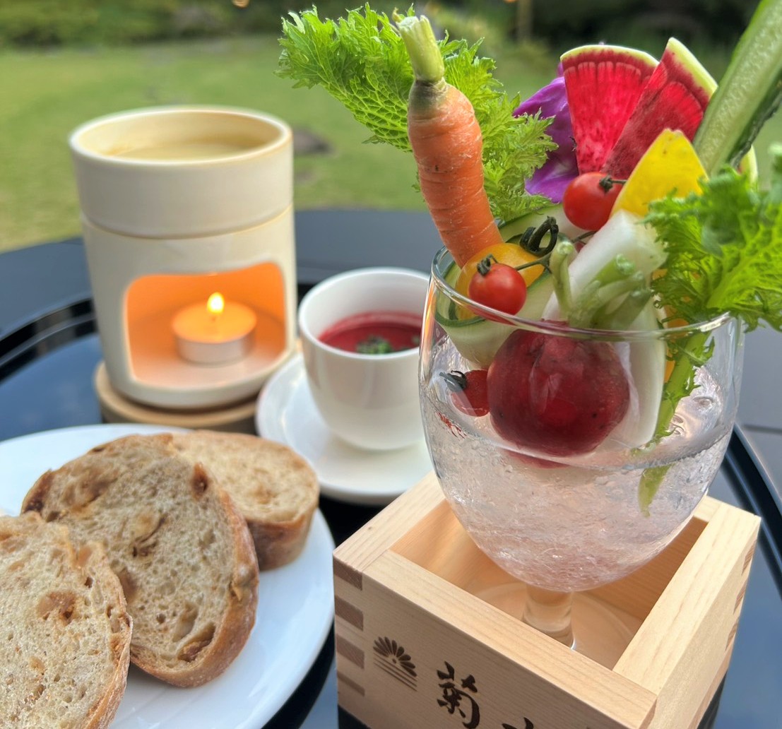 新鮮で彩り豊かな季節野菜にクリーミーでコクのある特製ソースをたっぷりつけて。バケットとの相性も最高です。
